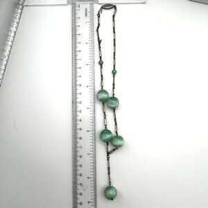 Art Deco Green Glass Bead White Enamel Bar Link Chain 1920s Necklace 16”