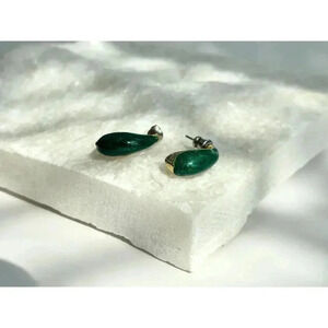 Art Deco Green & Gold Sparkly Vintage Teardop Minimalist Teardrop Earrings