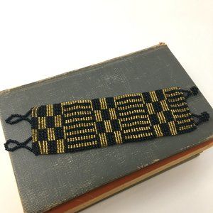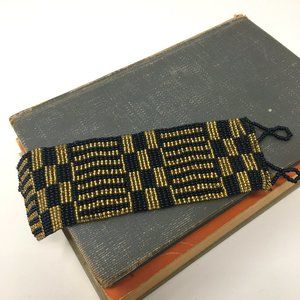 Art Deco Inspired Gold Black Wide Loom Woven Seed Bead Cuff Bracelet
