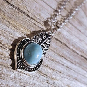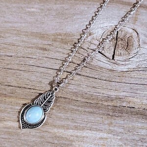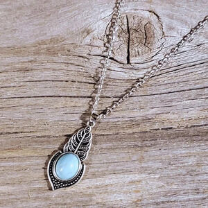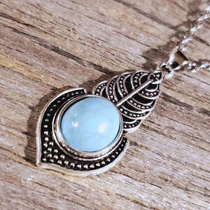 Art Deco Leaves Turquoise Blue Stone Silver Chain Necklace