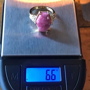 This Art Deco ring is made with a genuine 11.15 ctw Thulite gemstone that was mined in Norway. The ring additionally has natural white zircon accents. The ring is set in solid .925 sterling silver with an 18k yellow gold vermeil finish. The ring in the photos is the actual one you will receive, so please see photos for gemstone quality and measurements. This is a very beautiful and unique piece! Size 7.