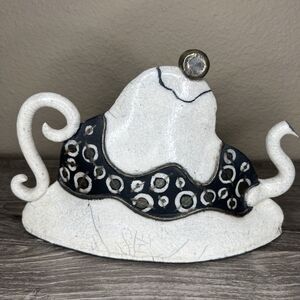 Art Deco Raku Pottery Teapot Figurine Sculpture Signed Lana Whimsical Crazing