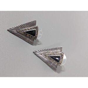 Art Deco Revival 925 Black Marcasite Triangle Drop Earrings Pierced