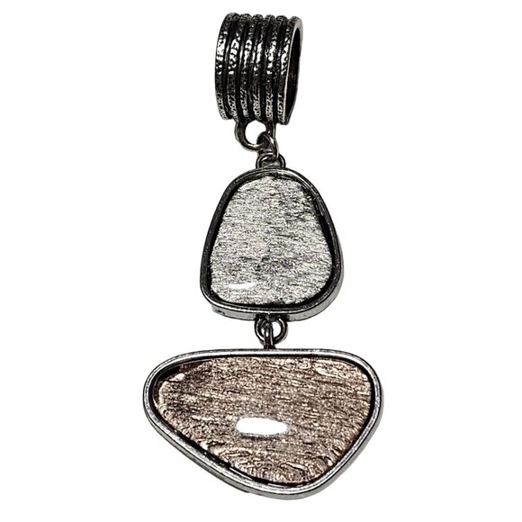 Art Deco Silver Rose Gold Tone Pendant Textured Double Stone Design Statement