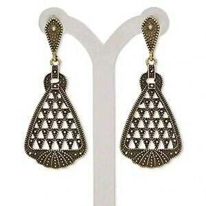 Art Deco Steampunk Antiqued Brass Filigree Cutout Dangle Earrings