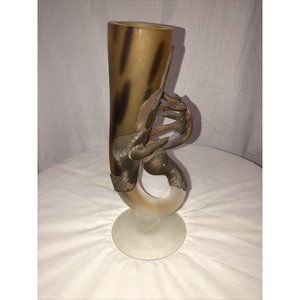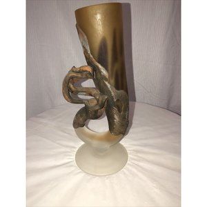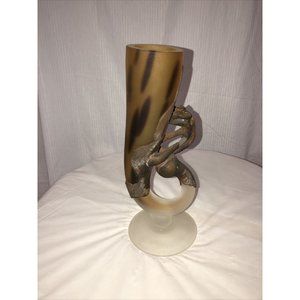 Art Deco Style Blown Glass Vase "Corn" 3d Metal Coated Brown Handmade