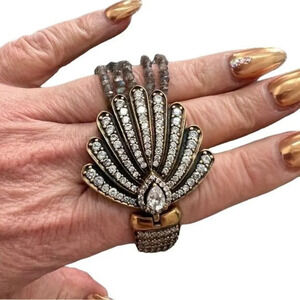 Beautiful Art Deco style, crystal accented fan shaped focal piece with faceted labradorite beaded strands. Very unique piece purchased in Istanbul’s Grand Bazaar.