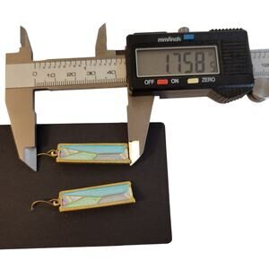 Art Deco Style Dangle Earrings Gold Tone Pastel Enamel Pierced Hook w/ Gift Bag