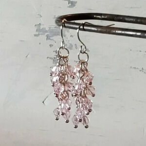Art Deco Style Hand Crafted Pink Translucent Crystal Baubles Cascade Earrings