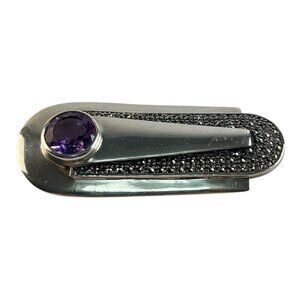 Art Deco Revival Heirloom 73 Sterling Silver Amethyst Marcasite Unisex Lapel Pin