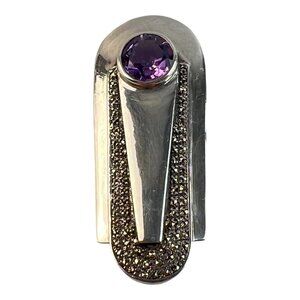 Art Deco Style Heirloom 73 Sterling Silver Amethyst Marcasite Unisex Lapel Pin