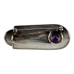 Add vintage elegance to any outfit with this Art Deco–style lapel pin by Heirloom 73. Crafted from solid sterling silver, it features a vibrant round amethyst set beside richly textured marcasite pavé, creating a striking, timeless accessory.