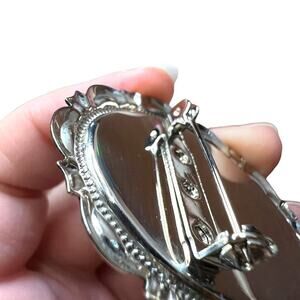 Art Deco Style Oval Brooch Pin Cream and Silver