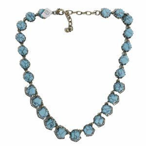 Art Deco Style Statement Necklace Goldtone Faux Turquoise & Clear Crystals 18"