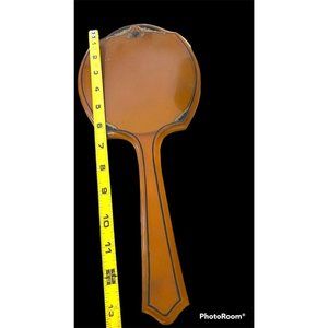 Art Deco Vanity Hand Held Beveled 13” Mirror Celluloid Bakelite Amber