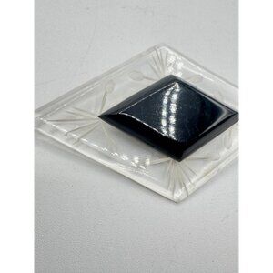Art Deco Vintage Lucite Brooch With Reverse Carved Pattern Diamond Shape