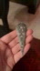 vintage style silver tone spear brooch with rhinestones. Art deco style.