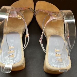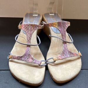 Very unique and gorgeous colors. Very good condition. There is a scrape on the heel actually the wedge of the left shoe other than that pretty clean and very little sign of wear.