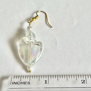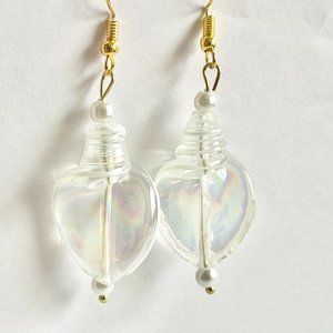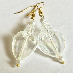 Art Glass AB Conch Shell Earrings White Pearl Murano Style Gold Plated