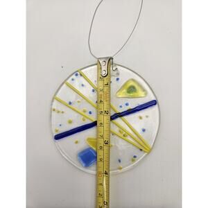 Art Glass Abstract Design Multicolor in Clear Fused Glass Window Suncatcher