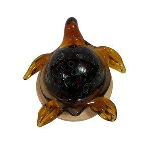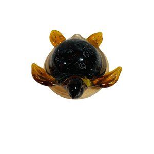 Art Glass Amber Brown Millefiori Large Turtle Figurine Paperweight Heavy