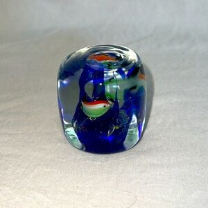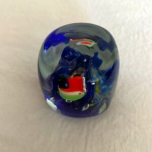 Adorable 2” art glass paperweight with an aquarium seascape scene