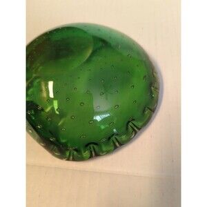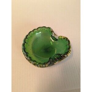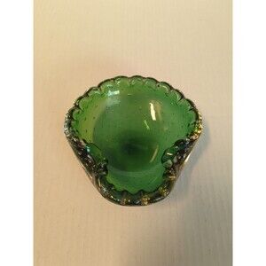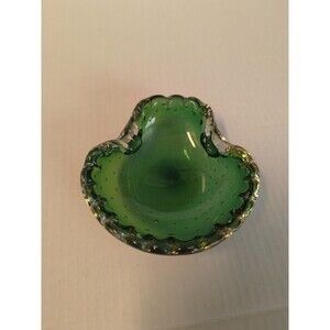 Art Glass Ashtray Bowl Green Bullicante Controlled Bubble Murano Vintage