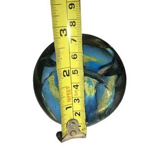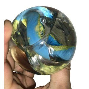 Art Glass Blue Green Yellow Swirled Paperweight