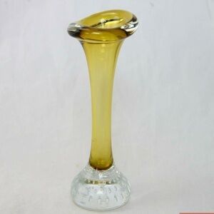 Yellow Amber Art Glass Bud Vase Large Controlled Bubbles Ground Base Vintage