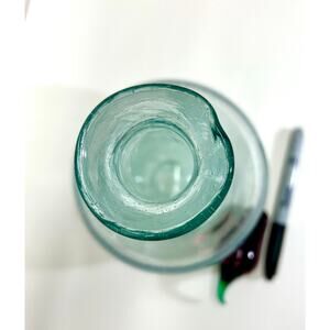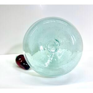 Up for auction is a stunning vintage 90s hand-blown art glass carafe decanter, made in Spain. This unique piece features a rustic southwest vibe with a unique red chili pepper glass stopper. Crafted with artisanal skill, the decanter has an approximate capacity of 1 liter (40 ounces) and measures 9 inches tall with a 6-inch round base. The hand-made glass stopper is approximately 3.5 inches long, perfectly complementing the piece. Ideal as a beverage dispenser - a beautiful blend of functionality and artistic design!