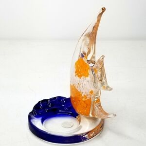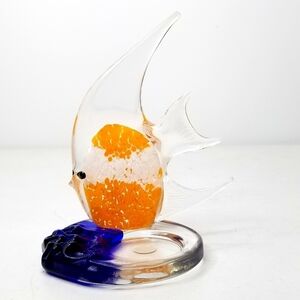 Art Glass Clear, Orange, White & Blue Angel Fish Tea Light Candle Holder