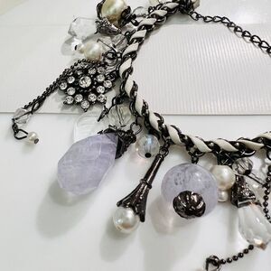BEAUTIFUL Handcrafted Art Glass Dangle Charm Bracelet Faux Pearl Faux Leather Wrap Lilac Rhinestone Dangle. New without Tags.