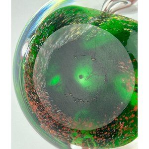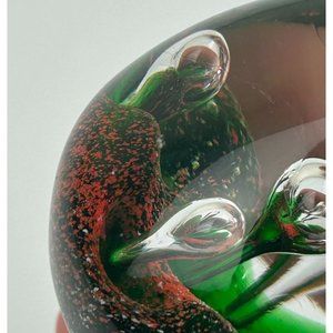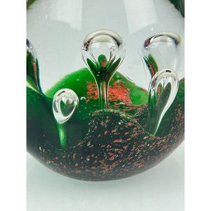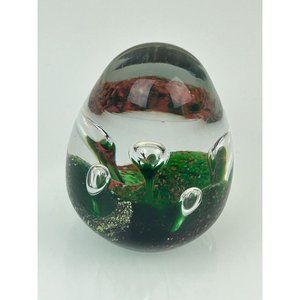 Art Glass Egg Shaped Paperweight Green Orange Controlled Bubble Office Decor