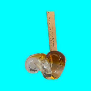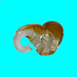 Abstract Art Glass Elephant Figurine Gold to Clear. He is about 4" tall and 6 1/2* long. He is heavy, close to 3 pounds, before shipping. He will weigh about 5 pounds after careful packing.