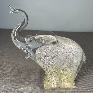 Art Glass Elephant Paperweight Silver Granna Glasbruk Sweden Handmade Signed