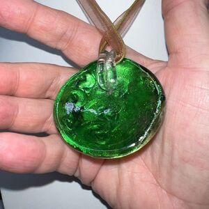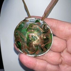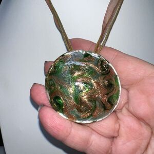 Art Glass Glitter Circle Pendant on Ribbon and Cord Necklace