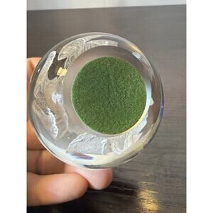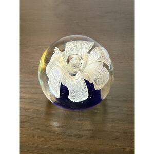 Art Glass Globe Orb Paperweight Cobalt Blue Orange Red Flower Controlled Bubble