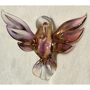 This iridescent glass hummingbird figurine is a stunning decorative piece crafted with precision. Its shimmering tones bring a sophisticated touch to any space.