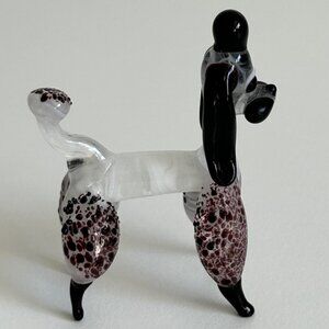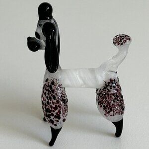 Art Glass Lampwork 2.5inch Poodle Black White Retro 50s Look