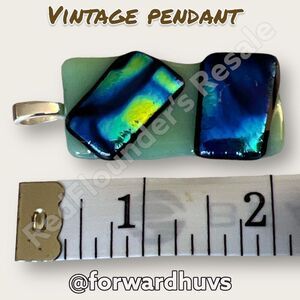 Art Glass Multi-Colored Pendant Silver Tone