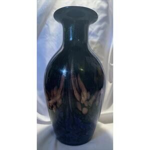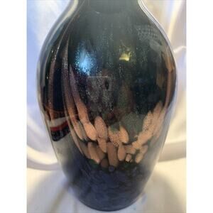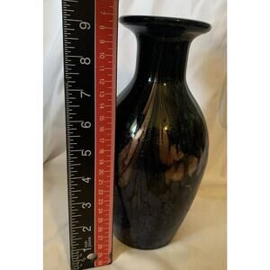 Art Glass Multicolor Hand Blown Metallic Black 9” Vase