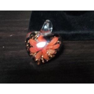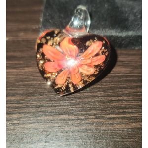 Art Glass Orange & Rose Gold Flower Heart Pendant.