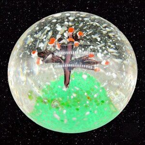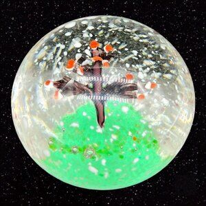 Art Glass Paperweight Cherry Tree w White Dots Round Sphere Vintage Glass 2.5”W