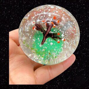 Art Glass Paperweight Cherry Tree w White Dots Round Sphere Vintage Glass 2.5”W 2”T