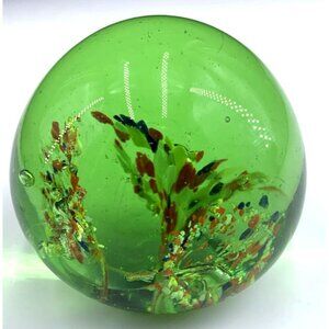 Art Glass Paperweight Green Fireworks Hand Blown 2.5" Unsigned Vintage