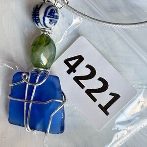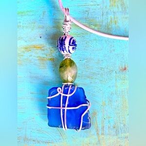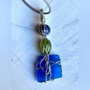 Sea Glass Pendant Necklace Wire Wrapped Artisan Handcrafted Handmade 4226 Y