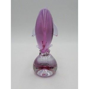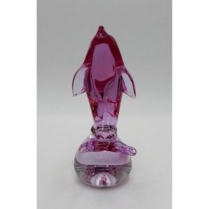 Art Glass Pink Dolphin on Ball Paperweight Desk Figurine 7 Inch