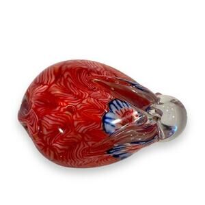 Art Glass Rabbit Paperweight Bunny Hand Blown Millefiori Clear Red White Blue