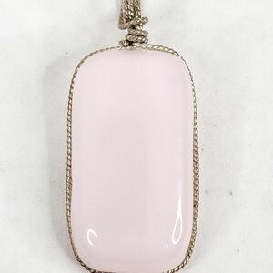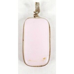 Art Glass Rectangle Shaped Pendant Charm Jewelry Artisan Jewelry White Pink Tone