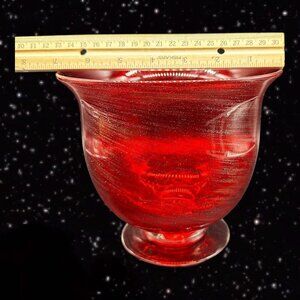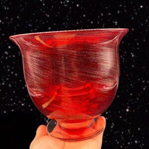 Art Glass Vase Footed Bowl Red with Specks of Glitter Clear Bottom 6”T 7”W